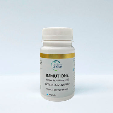 Immutione est un complément alimentaire qui soutient les défenses immunitaires grâce à une formule associant échinacée, propolis, griffe de chat et vitamine E. Il aide l'organisme à rester résistant face aux agressions extérieures, notamment en période de fatigue ou durant la période hivernale.